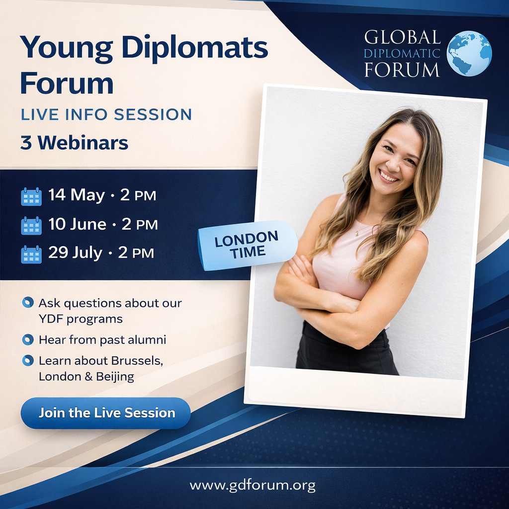 Join us for a series of live webinars designed to introduce you to the Young Diplomats Forum (YDF) experience. Whether you're exploring a future in international relations, diplomacy, or global leadership, this is your opportunity to gain first-hand insights and have your questions answered.
